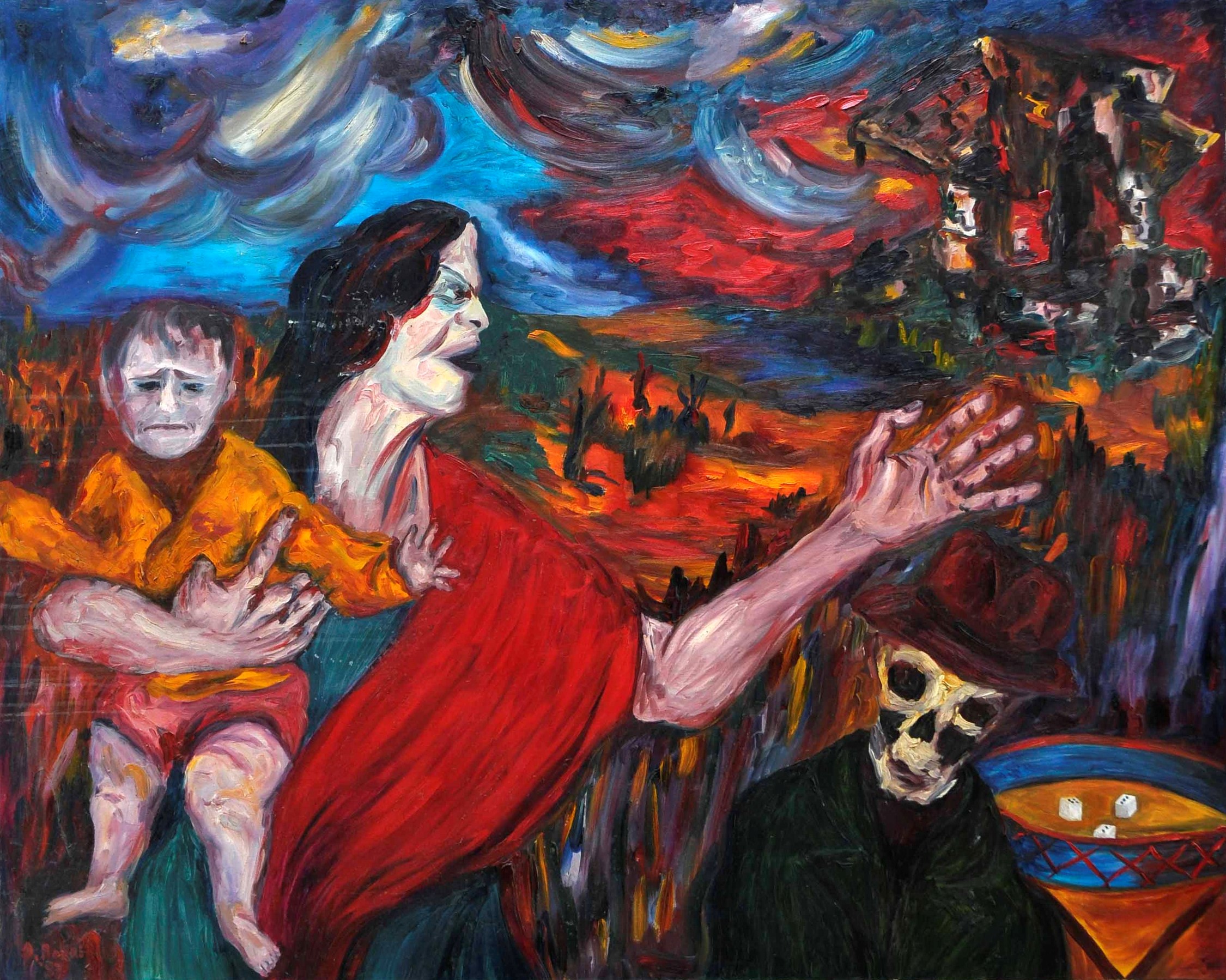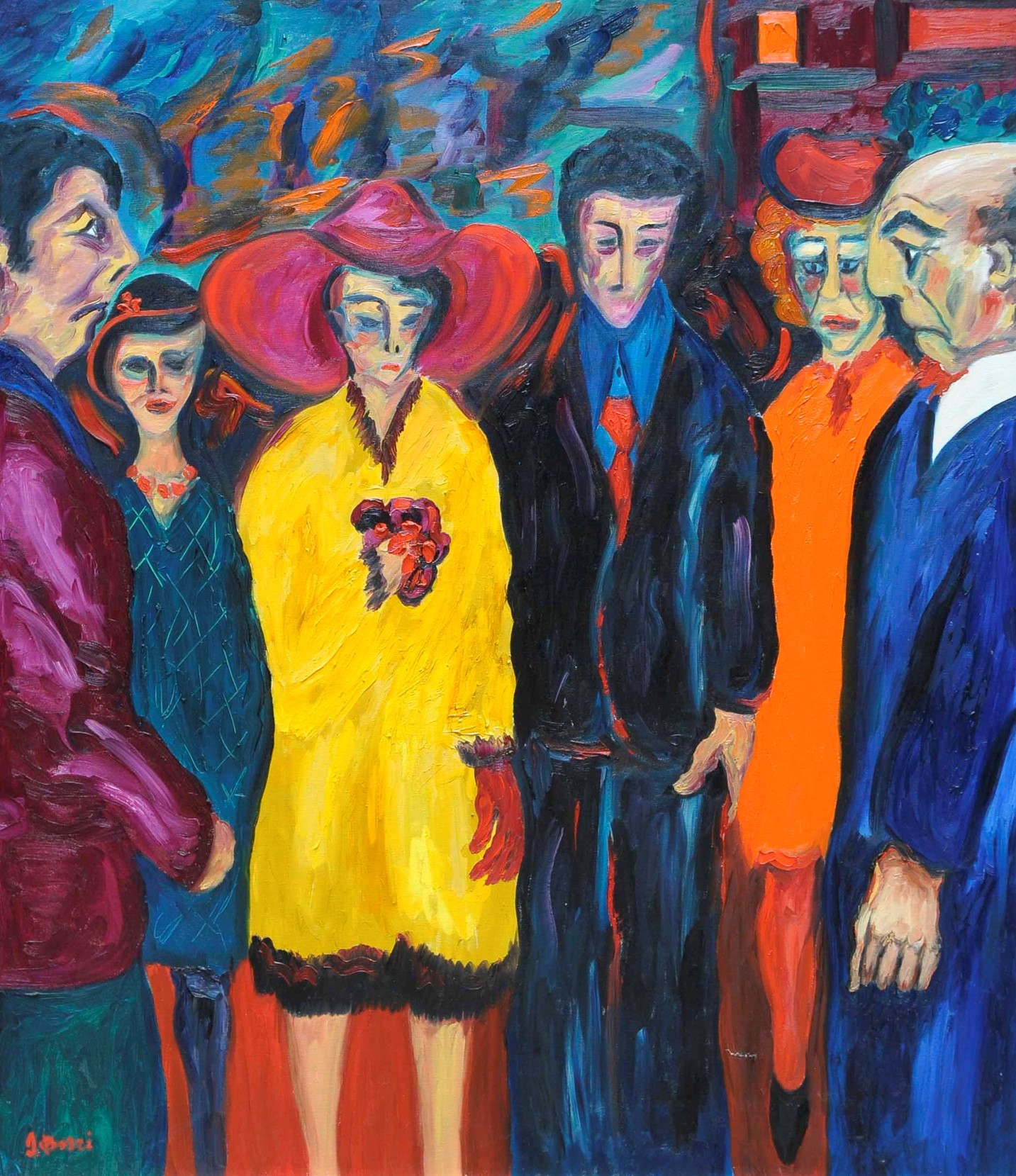 sempre adagiati ed immemori del cancro che rode l’anima loro, che sgretola le loro ossa, che atrofizza la loro spiritualità. […] L’artista espressionista davanti a tutto ciò che ha colpito la sua capacità emotiva reagisce tormentandosi, cercando affannosamente di strappare alla realtà il suo valore più riposto, il suo recondito significato oppure sforzandosi a violentare la forma e farne ricettacolo della propria visione, farne gola e bocca per il disperato richiamo della sua anima”.