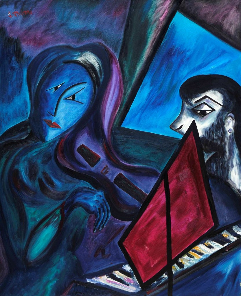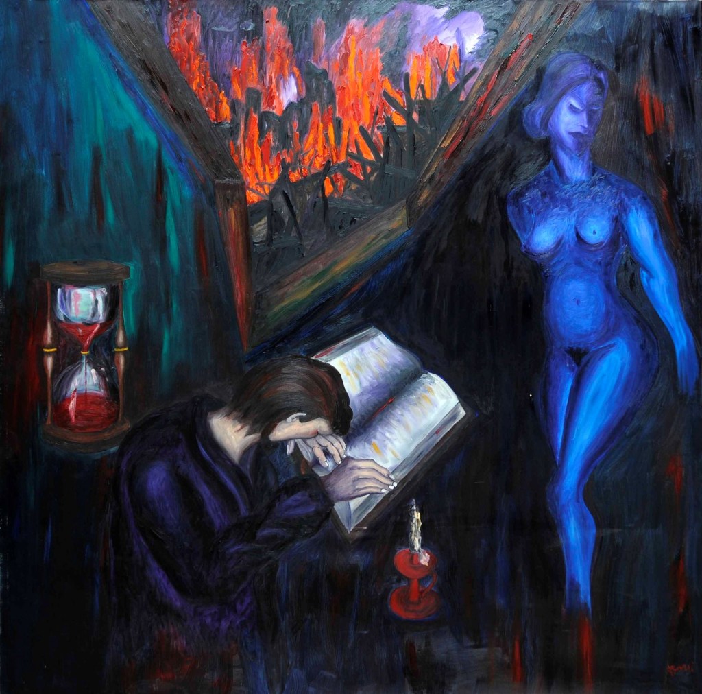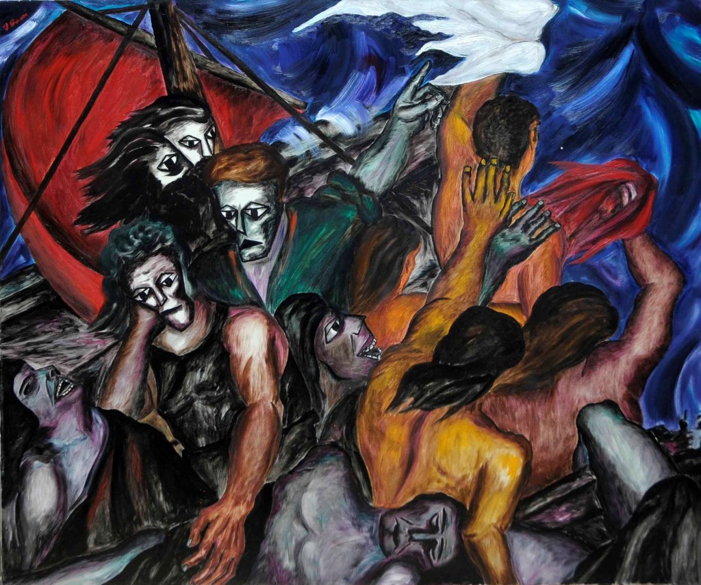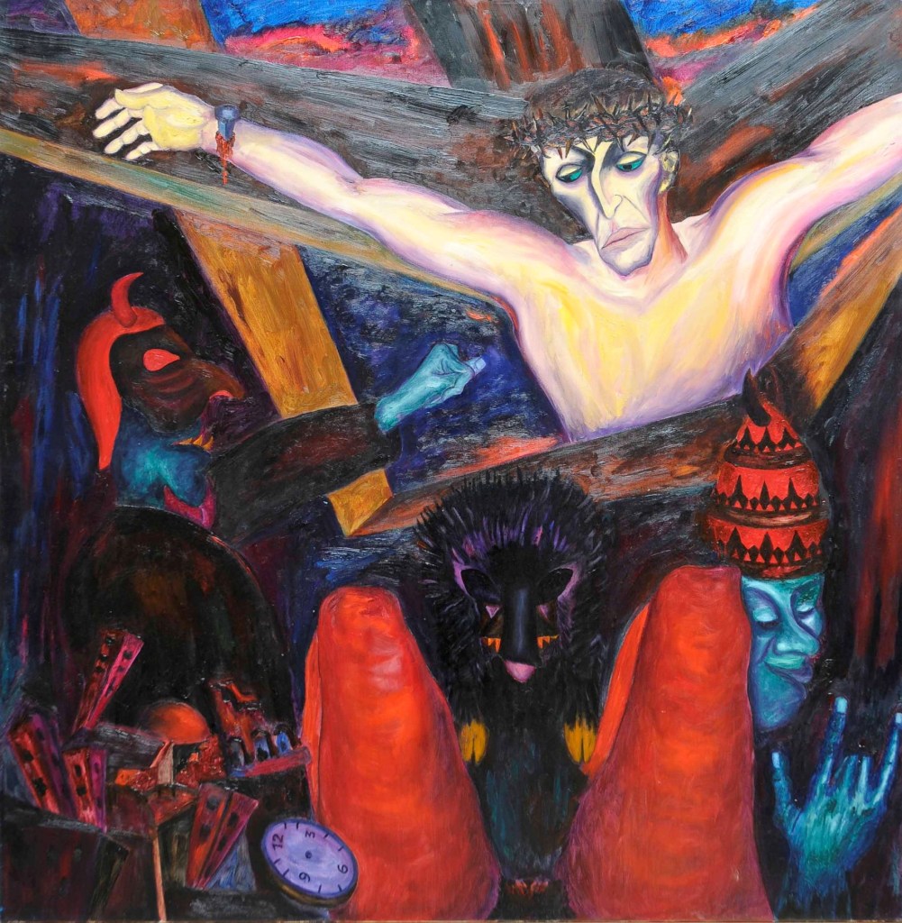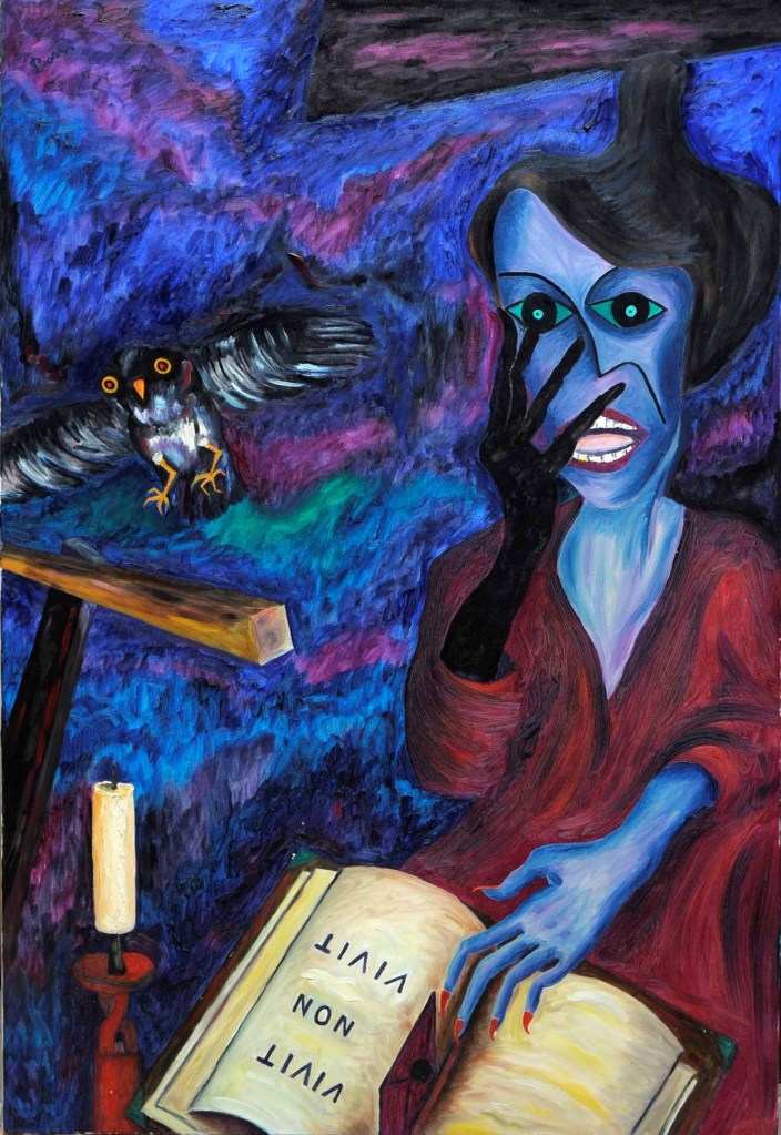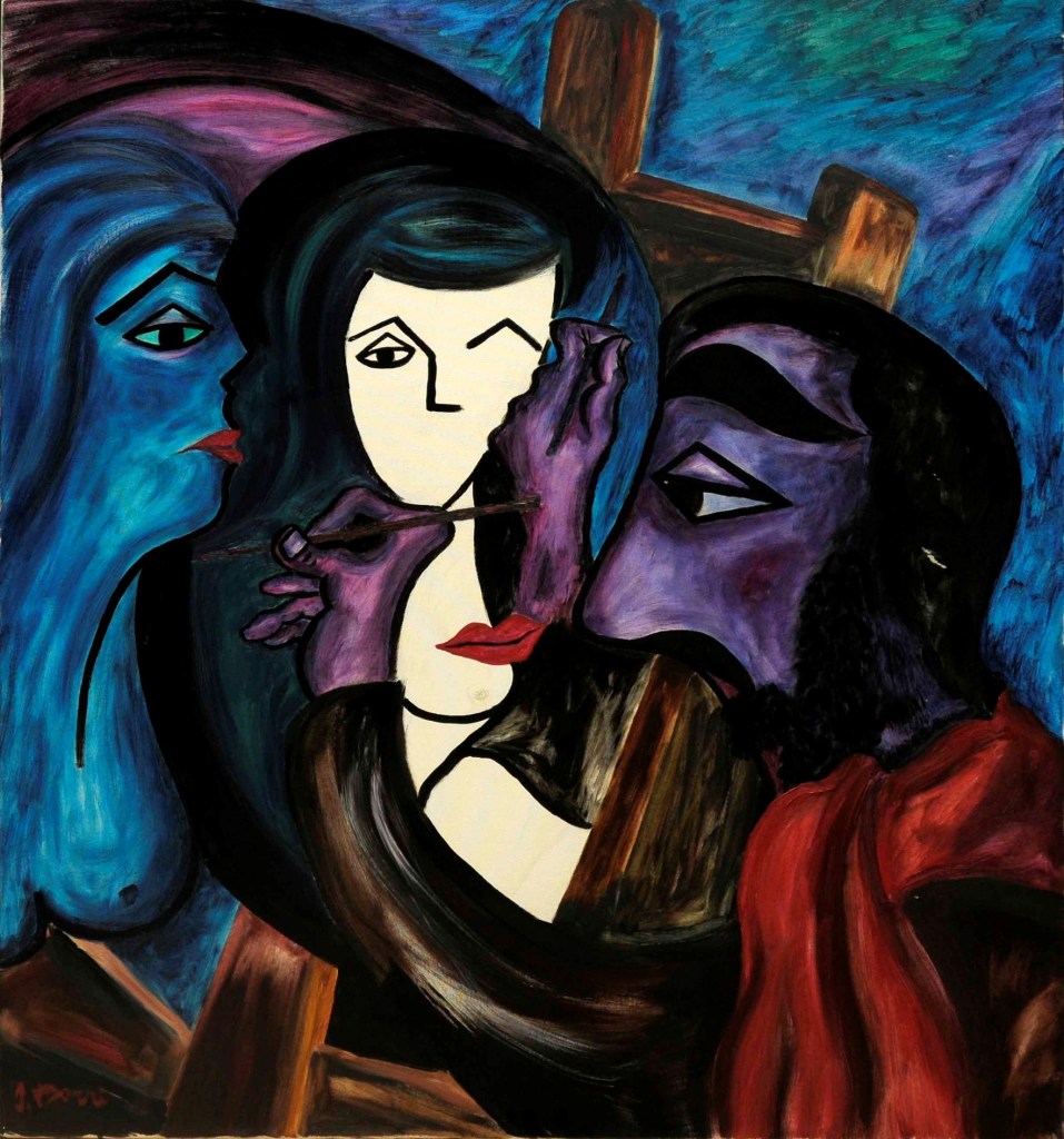 A partire dal 1990, l’opera di Oreste Borri si evolve verso un linguaggio più simbolico e immaginativo, ricco di allegorie e caricature, esplorando temi di teatralità e tensione esistenziale. Continua a rappresentare la figura umana, con particolare attenzione al nudo femminile, svelando la violenza intrinseca della natura umana. I suoi personaggi sono tutt’altro che eroici, divisi tra emarginati (prostitute, reietti, artisti di strada) e oppressori avidi di potere. Trasferitosi a Montevarchi, nel 2001 viene organizzata una grande esposizione delle sue opere dal 1947 al 2000. Nel 2004 espone “I dipinti del NO”, espressione del suo rifiuto categorico verso la società ipocrita, caratterizzati da composizioni geometriche in cui la parola “NO” emerge come simbolo di protesta contro l’ignoranza e la volgarità. Questo ciclo rappresenta uno dei momenti più intimi e personali della sua carriera, riflettendo il rifiuto di ogni compromesso in un mondo che percepiva come feroce e corrotto.